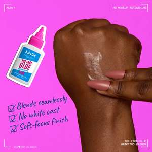 Rated 5 de 5 por de Love [This review was collected as part of a promotion.] Makeup stuck like glue with no sticky feel with NYX Professional Makeup's the Face Glue Gripping Primer! Foundation GLUED! Powder GLUED! Blush GLUED! This face gripping primer gives you all of the glue and none of the sticky feel for makeup that lasts up to 24 hours. No skin thirst here! This glue grips and drenches skin with up to 24 hours of hydration! This formula contains Polyglutamic Acid, known to be extremely hydrating and Maple Syrup, known for being grippy AF. This non-comedogenic gripping primer feels comfy on the skin, breathable all day, and gives a soft-focus finish. GLUE it to me!